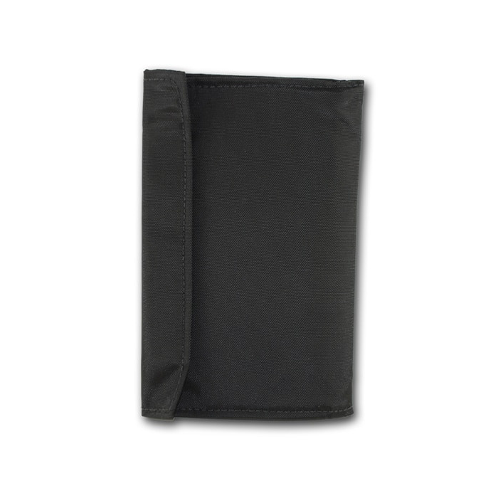 We then took it a step further by building a protective organizer around the booklet that opens to reveal a pen keeper, and clear window with a handy reference card that displays: SAMPLE histories, SAMPLE/ AVPU reminders, common medical abbreviations, and even Helicopter LZ commands!