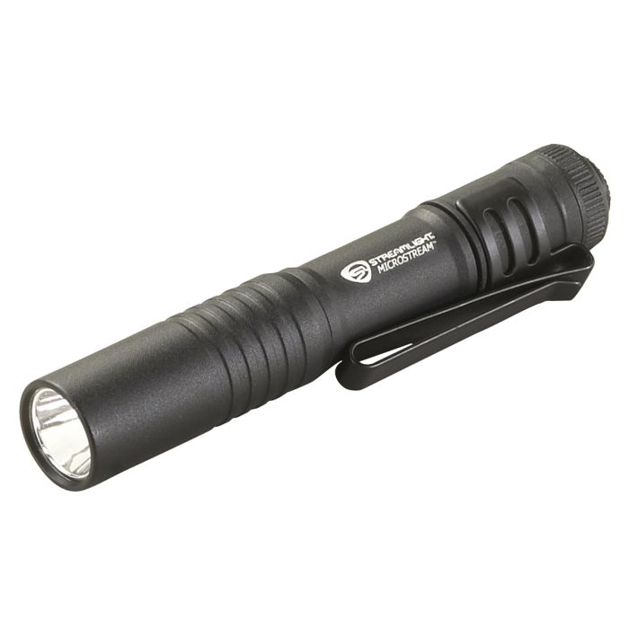 Microstream - Black Microstream, Powered by 1 "AAA" alkaline battery, .5 watt high-flux LED w/ 30,000 hour life,Push button tail switch,Delivers up to 20 lumens, Up to 1.5 hours of regulated Run Time, Machined aluminum construction,Corrosion and water resistant, Easily attaches/detaches to just about anything with key ring Length:3.5" Weight 1.04oz Color: Black Blister packaged White LED