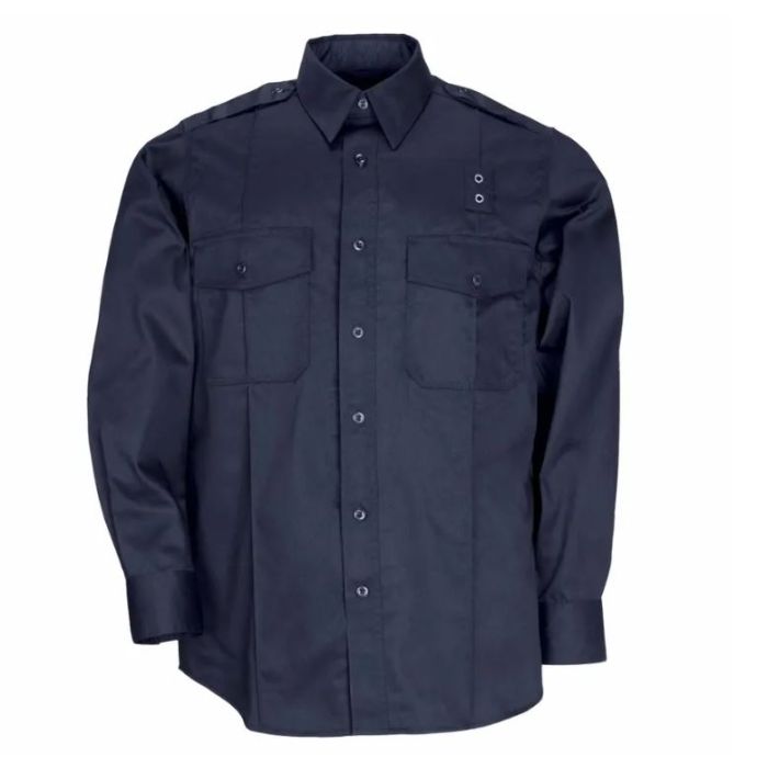 MN WOVEN SHIRT 65% POLYESTER 35% COTTON Engineered with input from operators in the field, the 5.11® PDU® Class A Long Sleeve Taclite® Shirt consistently exceeds the expectations of law enforcement officers around the world. An ideal foundation for your PDU or Dress Uniform, the Class A Taclite PDU Shirt is crafted from our 4.4 oz. Taclite ripstop fabric for maximum durability and lightweight breathability in hot or humid environments. A Teflon® treatment offers enhanced resistance against stains, moisture, and soil, permanent creases ensure a crisp, professional appearance, and a bi-swing shoulder design provides full mobility. Additional features include underarm vents to keep you cool and dry, an integrated badge tab, an epaulette kit, and pass-through mic cord access to keep you connected.