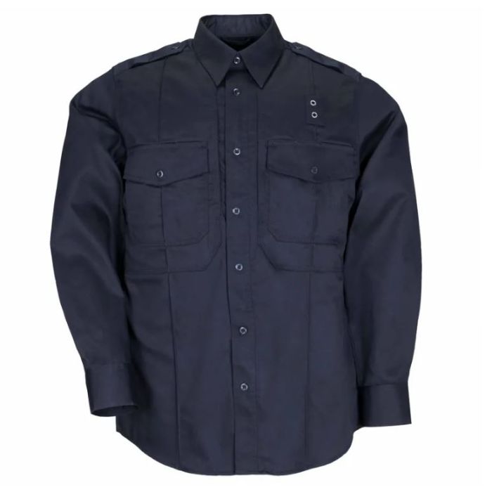 MN WOVEN SHIRT 65% POLYESTER 35% COTTON Engineered with input from operators in the field, the 5.11® PDU® Class B Long Sleeve Taclite® Shirt consistently exceeds the expectations of law enforcement officers around the world. Designed to stand up to consistent use in harsh duty environments, the Class B Long Sleeve Taclite PDU Shirt is crafted from our 4.4 oz. Taclite ripstop fabric for maximum durability and lightweight breathability in hot or humid environments. A Teflon® treatment maximizes resistance against stains, moisture, and soil, our patented 5.11 Hidden Document Pockets offer ample and covert storage, and a bi-swing shoulder design provides full mobility. Sewn-in military creases, improved colorfastness, and enhanced fade resistance ensure a crisp, professional appearance in any setting. Additional features include underarm vents to keep you cool and dry, an integrated badge tab, an epaulette kit, and pass-through mic cord access to keep you connected.