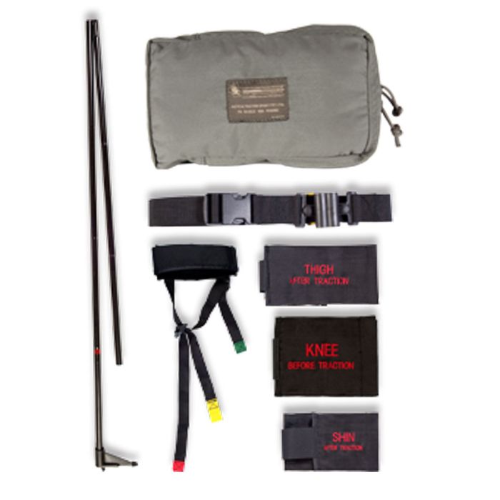 Designed for use on patients with suspected mid-shaft femur fractures, the Tactical Traction Splint (TTS™) from North American Rescue provides the critical mechanical traction needed to relieve pain, increase patient comfort and reduce the possibility of further vascular and nerve damage. Components of the system include a traction pole, ankle hitch, shin elastic strap, thigh elastic strap, upper thigh system and knee elastic strap. Strap names are embroidered on the fabric for easy identification. The compact storage system allows for rapid and reliable deployment in tactical and prehospital settings. The durable container is made of 500 Denier CORDURA® Solution-Dyed nylon with a robust molle-style system for easy attachment to aidbags. These features make the TTS™ the clear choice for today’s prehospital and tactical healthcare professionals who need to stabilize a fractured femur.