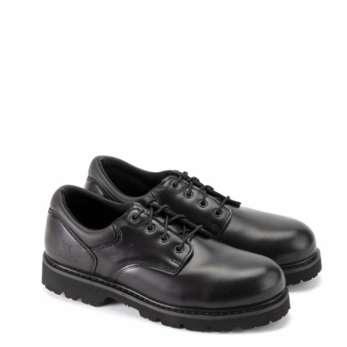 When your job requires you to look like a leader and still perform like the hardest-working member of your team, these classic leather EH oxfords with steel safety toes are at your service. Goodyear storm welt construction with an oil-resisting EVA lug outsole provide durability and extra traction, while the smooth, high-shine leather upper of these ATSM F2413-11-rated oxfords pass any inspection.