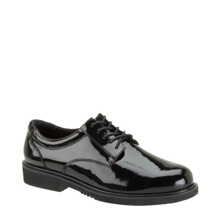 When your job requires a dress uniform, you need to look sharp and make a good impression. The easy-care, durable, and stylish poromeric upper in these oxfords keeps your feet dry with the comfort weave lining. The removable EVA footbed with polyurethane heel pad make standing at attention feel as good as it looks. An oil- and slip-resisting blown rubber outsole with non-marking tread means you can stand your ground without leaving a trace. Durable cement construction make this ultra-light oxford a classic uniform choice.
