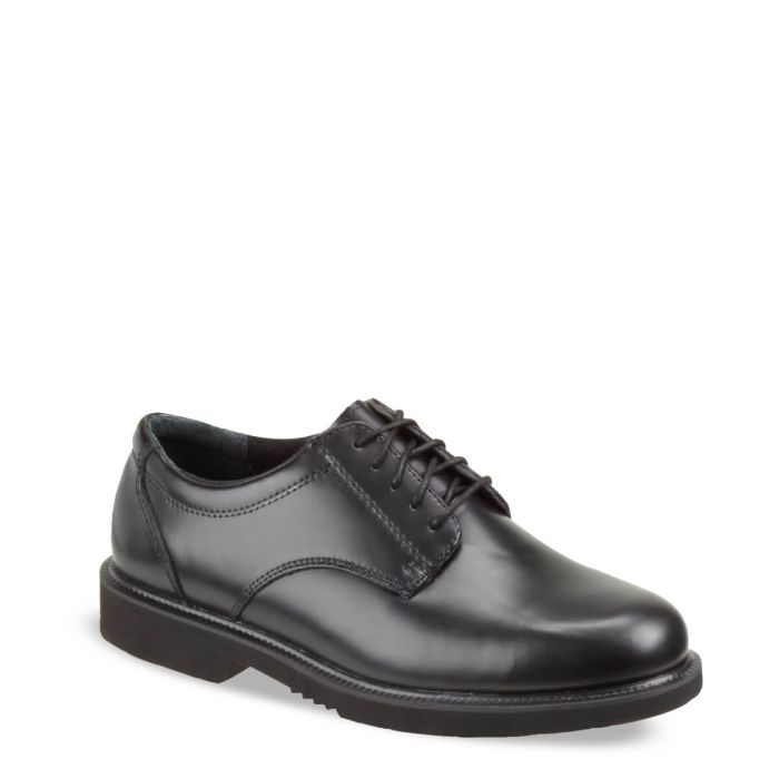 When your job requires a dress uniform, you need to look sharp and make a good impression. The smooth, high-shine leather of these classic oxfords won't let you down. The removable EVA footbed with polyurethane heel pad means you can stand or walk for hours in comfort. An oil- and slip-resisting blown rubber outsole with non-marking tread means you won't leave evidence of where you've been. Electronic hazard resistance and durable cement construction make this leather shoe a classic uniform choice.
