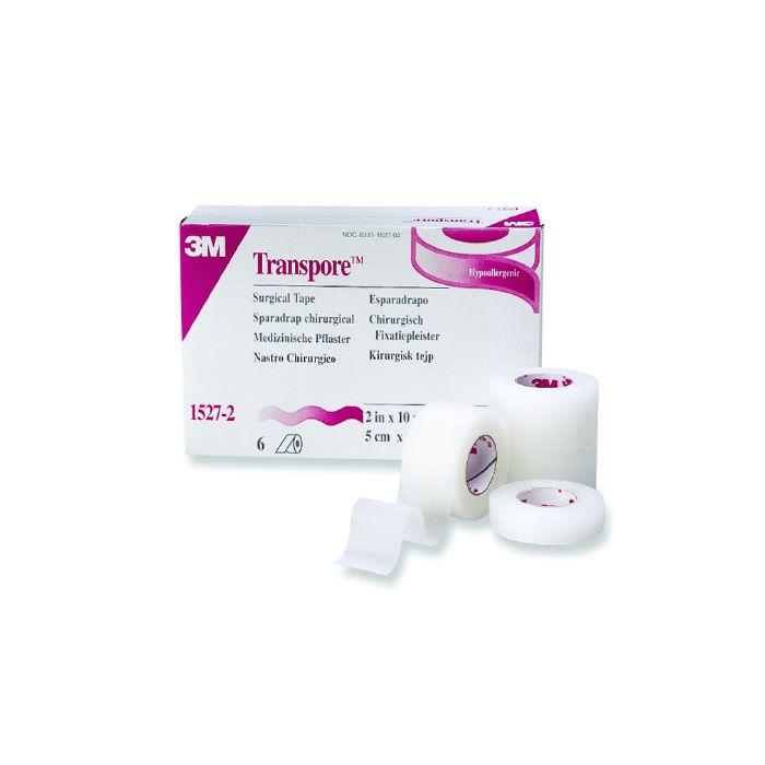 Hypoallergenic, transparent and perforated plastic tape that offers strong adhesion Transpore tape is easy to tear into very thin strips, and is easy to use even with gloves