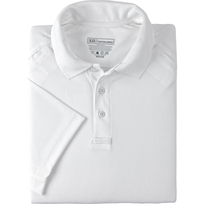 WM KNITTED POLO SHIRT 100% POLYESTER A new standard in high performance women's polyester polo shirts, the Performance Polo from 5.11 Tactical® is designed to provide a professional appearance and lasting comfort in the busiest work environments. Built from our proprietary SmartWeave fabric, the Performance Polo line of women's polyester polo shirts provides superior moisture wicking action that keeps you cool, dry, and in control all day long. Additional features include gusseted sleeves for freedom of movement, pen pockets at the left sleeve for quick convenience, integrated mic clips to keep you connected, and a no roll collar with flexible collar stays for a clean, neat profile throughout your work day.