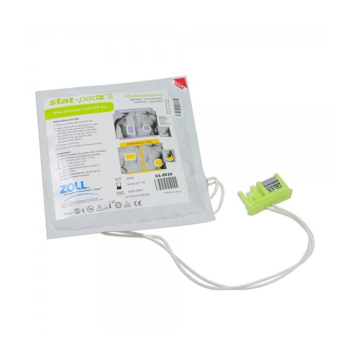 Zoll Stat-padz® II, HVP (Hight Viscosity Polymer) Multi-function electrodes. Multi-function: defibrillation, non-invasive pacing, cardioversion and ECG monitoring. For use with Zoll AED Plus® and AED Pro® Models. It will also work with the M Series®:, E Series®, R Series® and X Series™ AEDs provided that the customer has a Multi-Function Cable. Please note that there is no CPR feedback (compression depth & pace metronome) capability with this traditional 2-piece electrode.